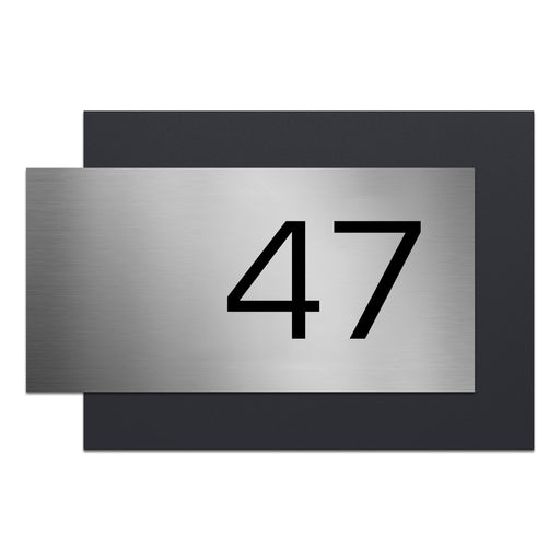Personalisiertes Edelstahl-Wandschild mit individueller Hausnummer. Zweiteilige Ausführung mit hochwertiger in RAL7016 anthrazit gepulverter Rückwa...